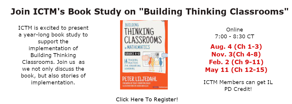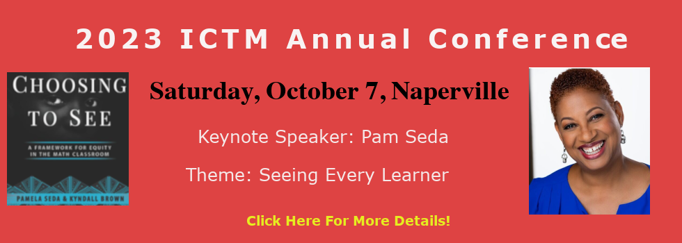 The Illinois Math Teacher (IMT) has been the official journal of ICTM since the early 1970's! After a brief hiatus, we are excited to announce that the IMT has been relaunched so that Illinois math educators of all levels have a another great way to share their learning, lessons, and reflections with our broader community. CLICK HERE to go to the new IMT webpage and access the Summer 2025 issue which contains four relevant and interesting articles titled: "Promoting Discourse and Intellectual Need in my ELL Classroom", "Picture Books as Windows, Mirrors, and Sliding Glass Doors to Young Children’s Mathematical Brilliance ", "Launching into Math with Evidence-Based Literacy Practices", and "Is Edgar Allan Poe Really a Mathematician?". Thank you to all of the authors!!!